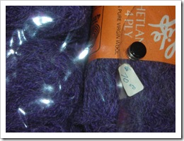 Then, on another thrifting adventure, my luck continued, as I found this . .. 10 skeins of virgin wool from Scotland, along with a piece of wool fabric!!! The picture doesn’t do justice to the gorgeous indigo color of this wool. And look at the original price tag, $70.00!!